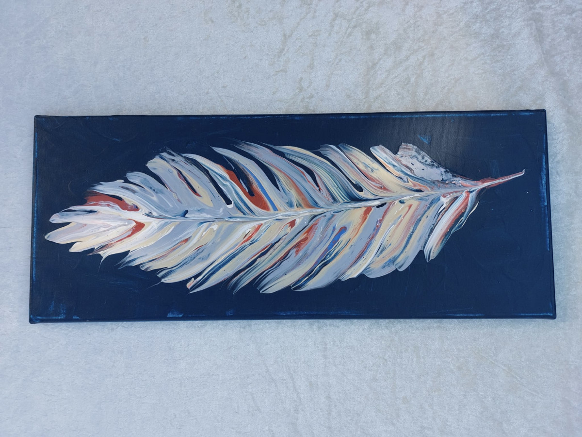 Meine Federbilder sind alle im Zeitraum von 14. Februar bis Dezember 2021 entstanden. Die Inspirationen dazu erhielt ich zu dieser Zeit auf Schritt und Tritt. Echte Federn lagen einfach überall auf meinem Weg; direkt vor der Haustür, auf den Spazierwegen mit meinem Hund, sogar im Fußraum im Auto. Eine Verbundenheit zu diesem Symbol hatte ich zwar schon lange gespürt, aber noch nie hatten die Federn sich so geballt in meinem Leben gezeigt wie 2021. Sie erfüllten mich mit Freude und Leichtigkeit. So suchte ich nach einem Weg, sie darzustellen. Im Indianischen steht die Feder, da ja die Vögel hoch in die Lüfte aufsteigen im Flug, für den Himmel und damit für die Verbundenheit mit dem Höheren, der Geistigen Welt.